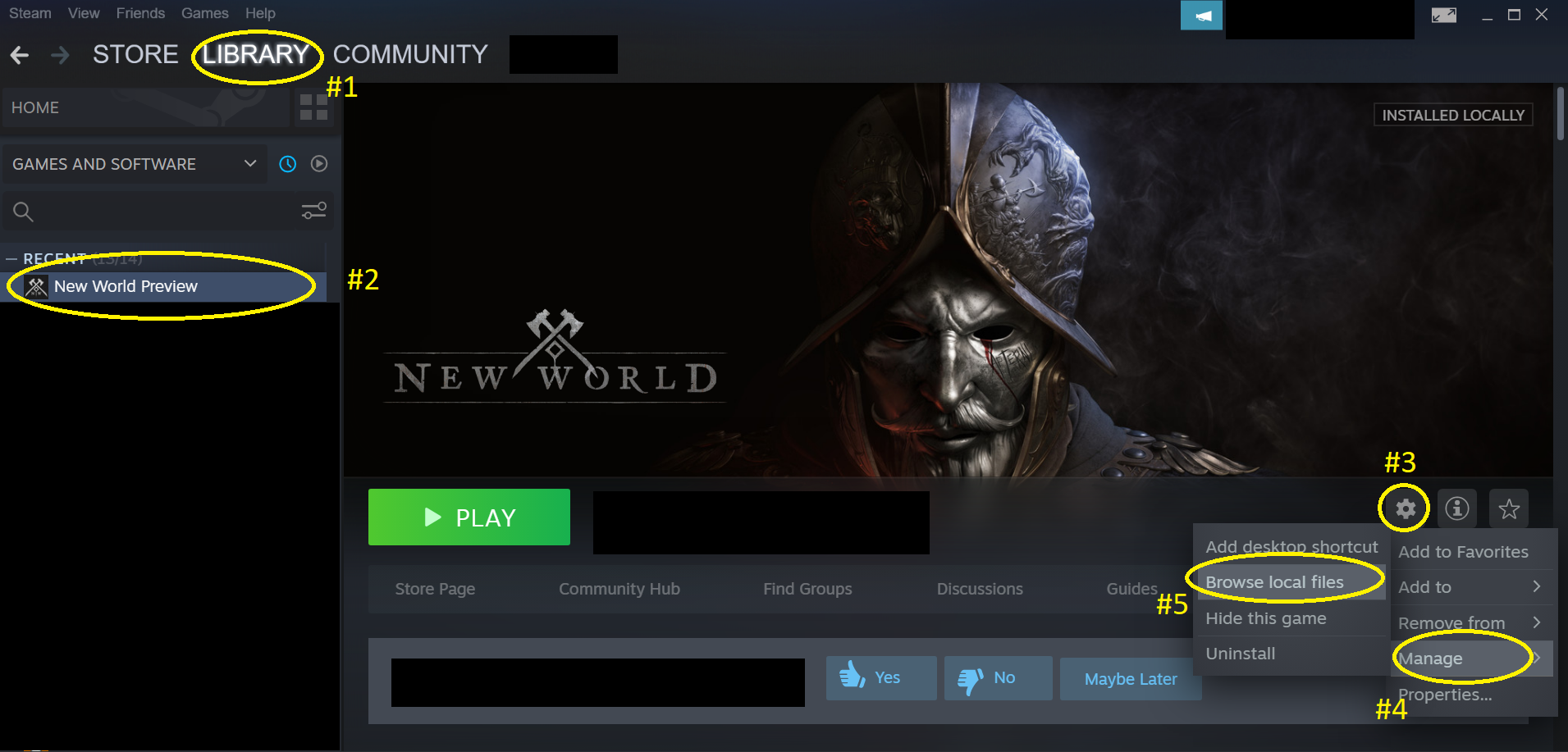 To do this Go to Library --> Go to "New World Preview" --> Click Settings Icon --> Click Manage --> Browse Local Files. (see photo for guide)